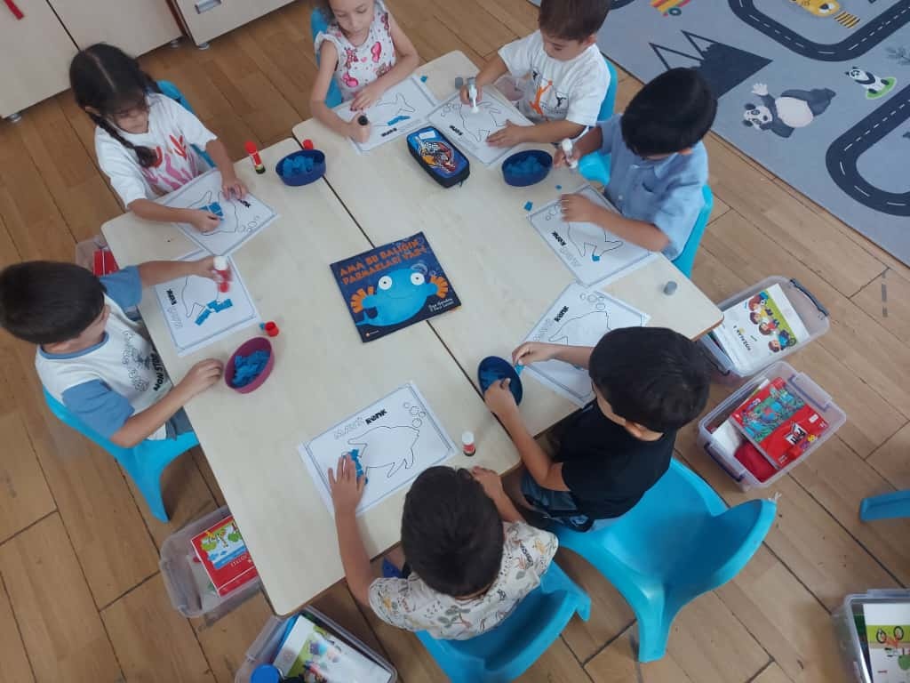 5 YAŞ MİNİK KALPLER ÖĞLE GRUBU MAVİ RENK GÜNÜ VE BAHÇE SAATİ